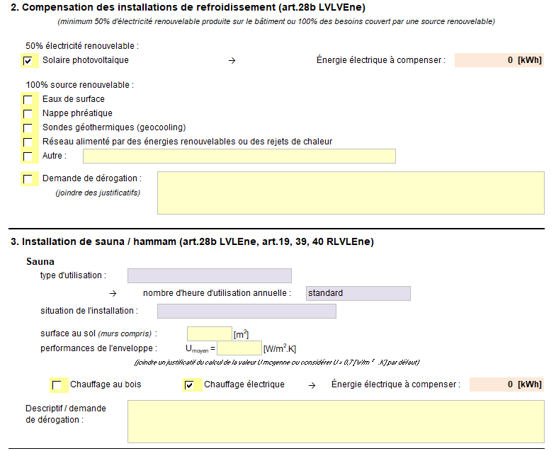 Si une machine de froid par compression est présente, il faut cocher la case solaire photovoltaïque.